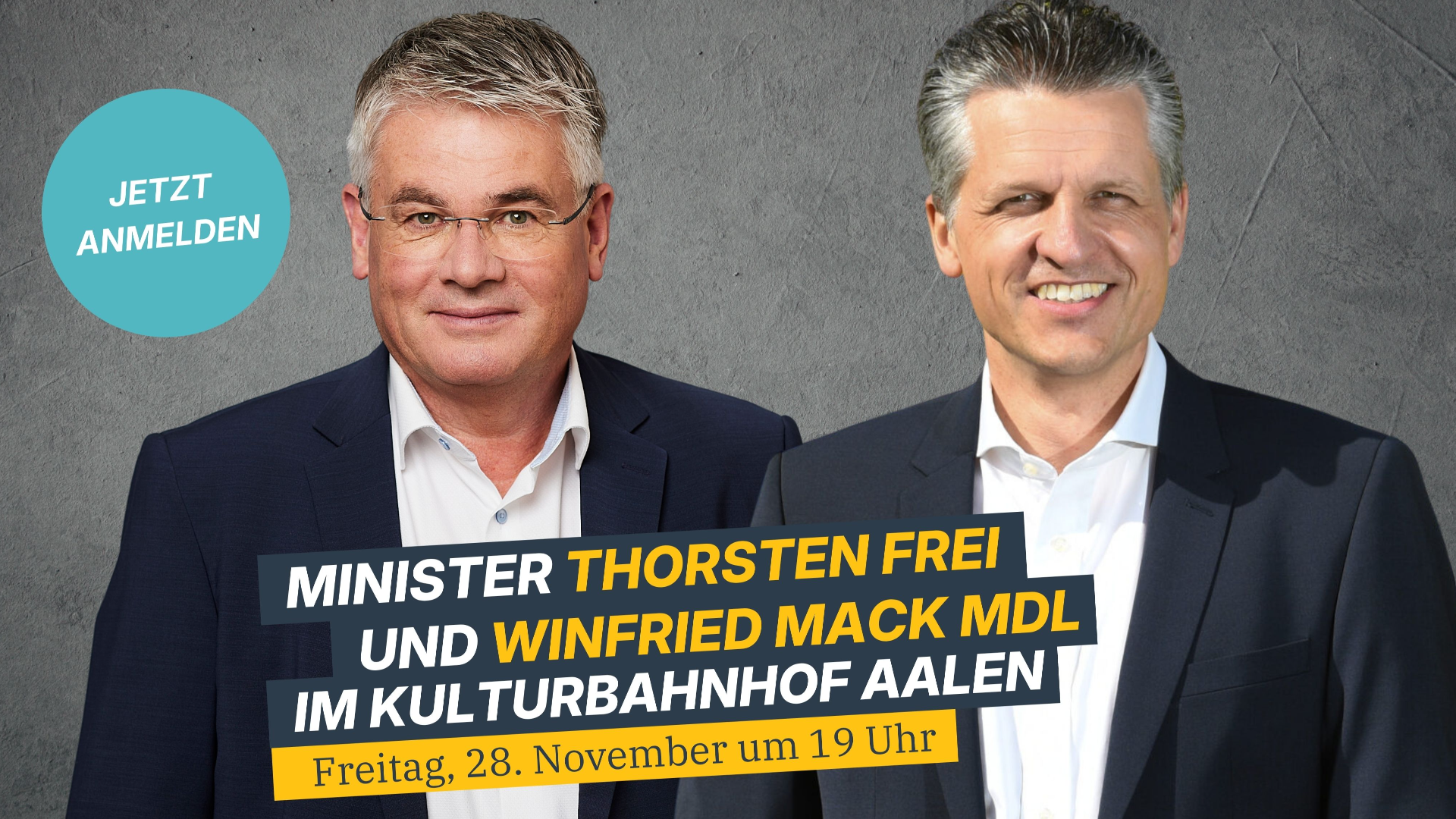 Chef des Bundeskanzleramts und Bundesminister für besondere Aufgaben, Thorsten Frei MdB, kommt zu diesem besonderen Abend in den Aalener Kulturbahnhof.