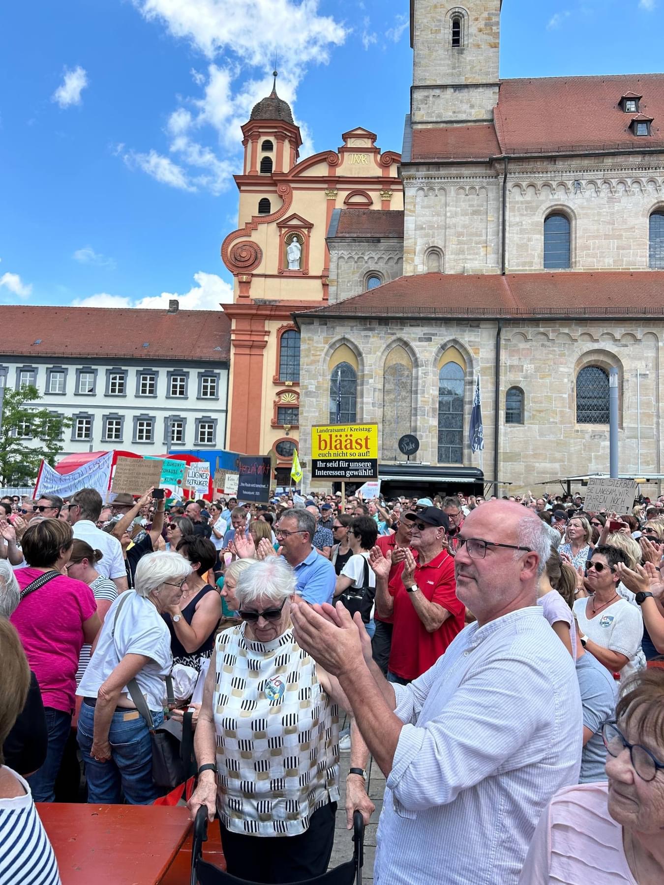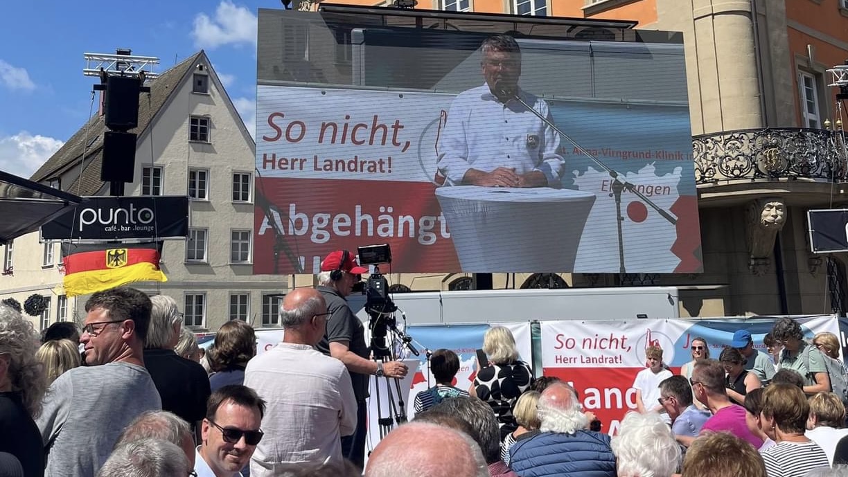 Über 5000 Unterstützerinnen und Unterstützer waren auf dem Marktplatz vor Ort, um für den Erhalt der St. Anna-Virngrund-Klinik zu kämpfen. Gekommen waren sie aus der ganzen Region und auch die Klinikmitarbeiterinnen und -mitarbeiter demonstrierten mit.