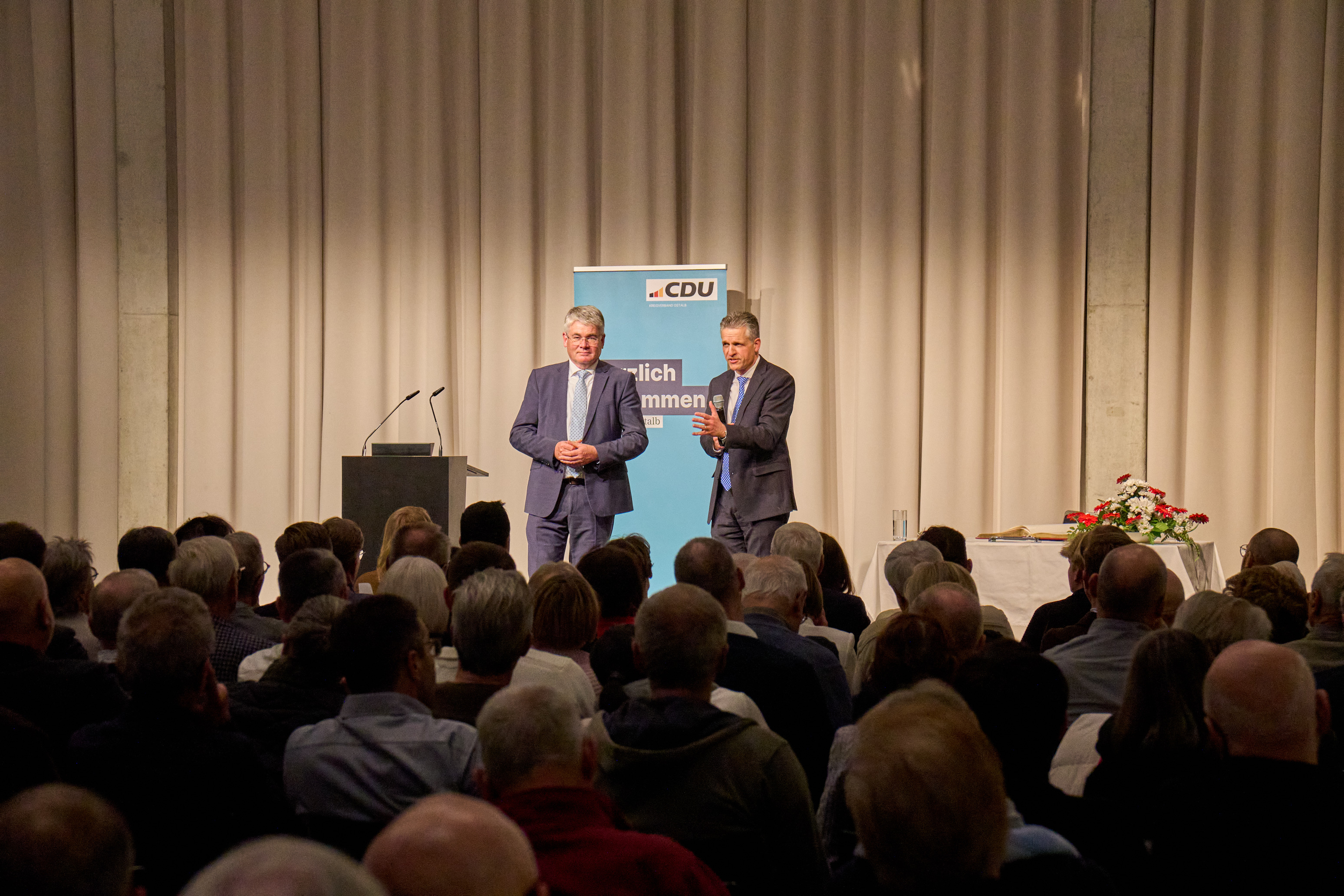 Kanzleramtsminister Thorsten Frei MdB war auf Einladung des Landtagsabgeordneten Winfried Mack (am 28. November) zu Gast im Kulturbahnhof in Aalen, wo er gemeinsam mit rund 250 Bürgerinnen und Bürgern über die Zukunft Deutschlands und Europas diskutierte.